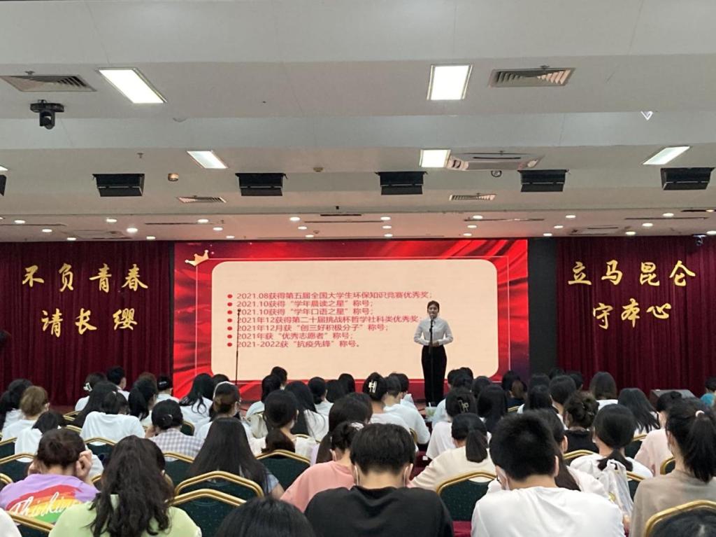 本次活动的主题是“不负青春请长缨,立马昆仑守本心”。在主持人的宣布下,活动正式开始。出席本次活动的嘉宾有吴秀文老师、曾婉莹老师、李伟东老师,还有外语学院主席团的成员和各班的代表。本次活动从17名候选人中最终竞选出8位应选人。每位选手上台都带着饱满的精神状态来竞选本次活动的奖项,用他们自信的笑容、澎湃的激情感染在座的每一个人。各位选手风格特色各异,展现出他们每个人的特点。在903大厅中演讲自己精心准备的稿子,声情并茂,台下的观众认真聆听每一位选手的演讲。有辛勤奖的付出、责任奖的担当、守护奖的关怀、勤奋奖的努力、才能奖的出众、坚韧奖的奋斗、无私奉献奖的践行、文艺奖的进取、最佳组织奖的团结。每一位选手用自己朝气蓬勃的青春诠释奖项背后的意义,展示人生风采。能走到这一步,不管是否获选,他们都已印入每位观众的心中。