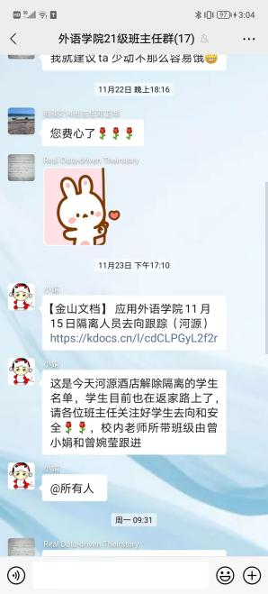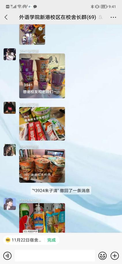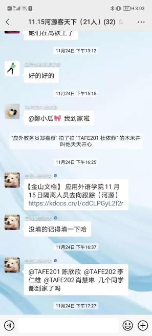 校外老师也成立校外学生转运对接工作组,作为与学校、社区沟通的桥梁,精准对接校外转运的每一批学生,落实其饮食、心情、归家流程等,做到持续有效的远程管理。外语学院始终保证不落一人,精准把控。