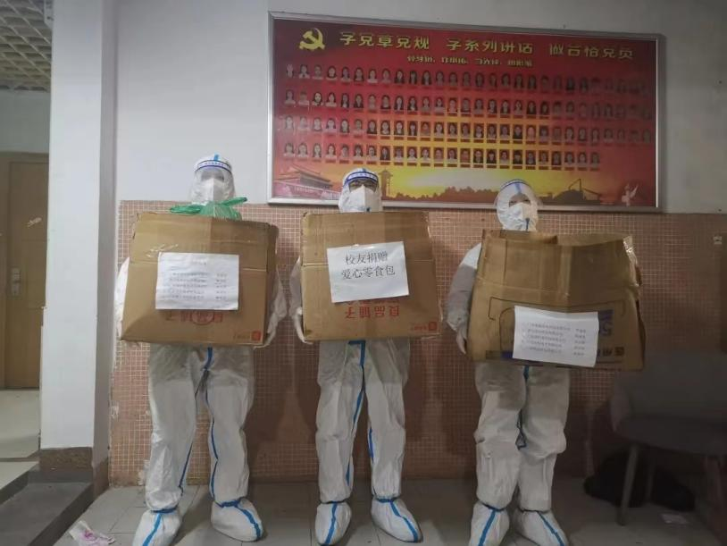 学校疫情封控期时间延长,学生情绪不稳,为了鼓舞士气,让学生们感受到外语学院的温暖,外语学院书记周延辉、副书记张炜斌与学院老师何志海、周建鹏为在校学生派送由校友捐赠的零食大礼包,让学生感受到学院的关心和温暖,得到同学们热烈欢迎。