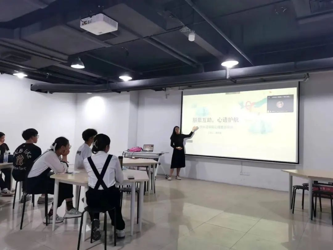 2022年11月1日19点30分在南海北校区双创中心——工匠站以“朋辈互助,心语护航”为主题开展了应用外语学院心理委员的培训,本次培训采用线上线下相结合的方式进行。应用外语学院大一18名新晋心理委员参与了线下的培训,应用外语学院大二、大三的心理委员在线上观看了本次培训。