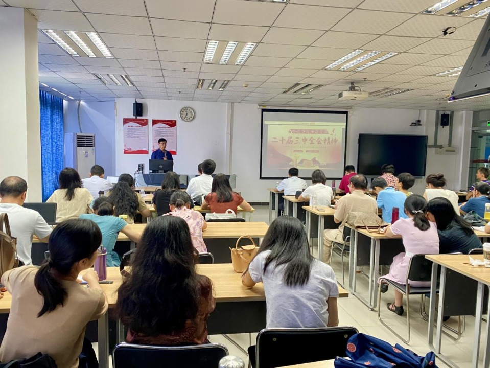 为深入学习贯彻党的二十届三中全会精神,进一步统一思想、凝聚力量,8月30日上午,应用外语学院党总支书记周延辉为学院全体教职工讲授“学习贯彻党的二十届三中全会精神”专题党课,共75人次参加。