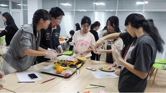 活动结束后,同学们围坐在一起,分享了自己制作水果拼盘的创意和感受。大家纷纷表示,这次活动不仅让自己学会了如何通过简单的方式放松心情,还增强了对生活细节的感知力,帮助他们更好地融入大学生活,减轻了对新环境的焦虑和压力。
