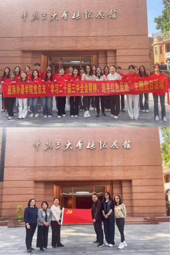 为进一步学习贯彻党的二十届三中全会精神,深化党史学习教育,重温红色足迹,传承红色基因,增强党员的责任感、使命感。应用外语学院学生党支部于2024年12月10日下午,开展参观中共三大会址纪念馆的主题党日活动。应用外语学院学生党支部、教师第二党支部、民主党派代表共同参加本次参观学习活动。
