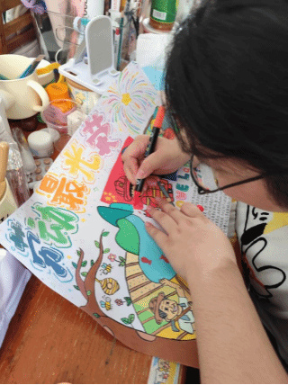 · 互帮互助解难题:创作过程中遇到了挑战,潘菲老师和班级劳动委员刘思也全程跟进,随时提供指导建议,帮忙协调工具,解决同学们在色彩搭配、结构固定等方面遇到的实际困难,确保活动顺利进行。