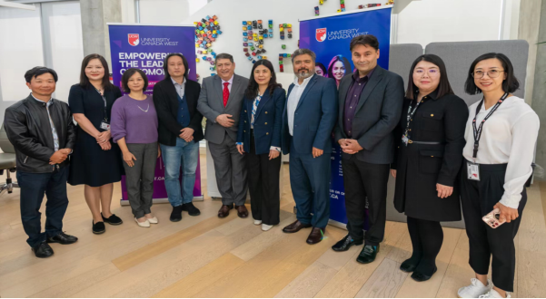 在加拿大的加西大学,与Bashir Makhoul校长等校领导交流洽谈,双方介绍了两校的办学历史和成就,回顾了近年合作办学的基础,围绕合作办学深入洽谈并取得共识。同时,双方还举办了师资互聘证书颁发仪式,加西大学副校长Komil Mamajanov、该校文商社科学院院长George Drazenovic被聘为我校应用外语学院客座教授;我校黎云莺等2位老师被聘为加西大学学者专家。出访团一行还前往温哥华当地企业Mapleland Biotech Corporation实地调研,就共建海外实习基地、技术服务输出、产教融合等方面达成合作意向。