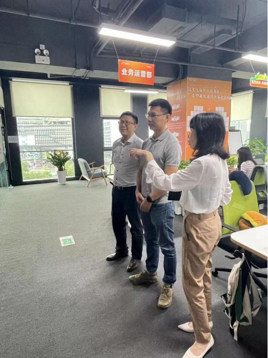 2022年4月26日,我院党总支书记周延辉、党总支副书记张炜斌,商英教研室副主任谢成丽、辅导员李伟东一行走访了一意(广州)网络科技有限公司。