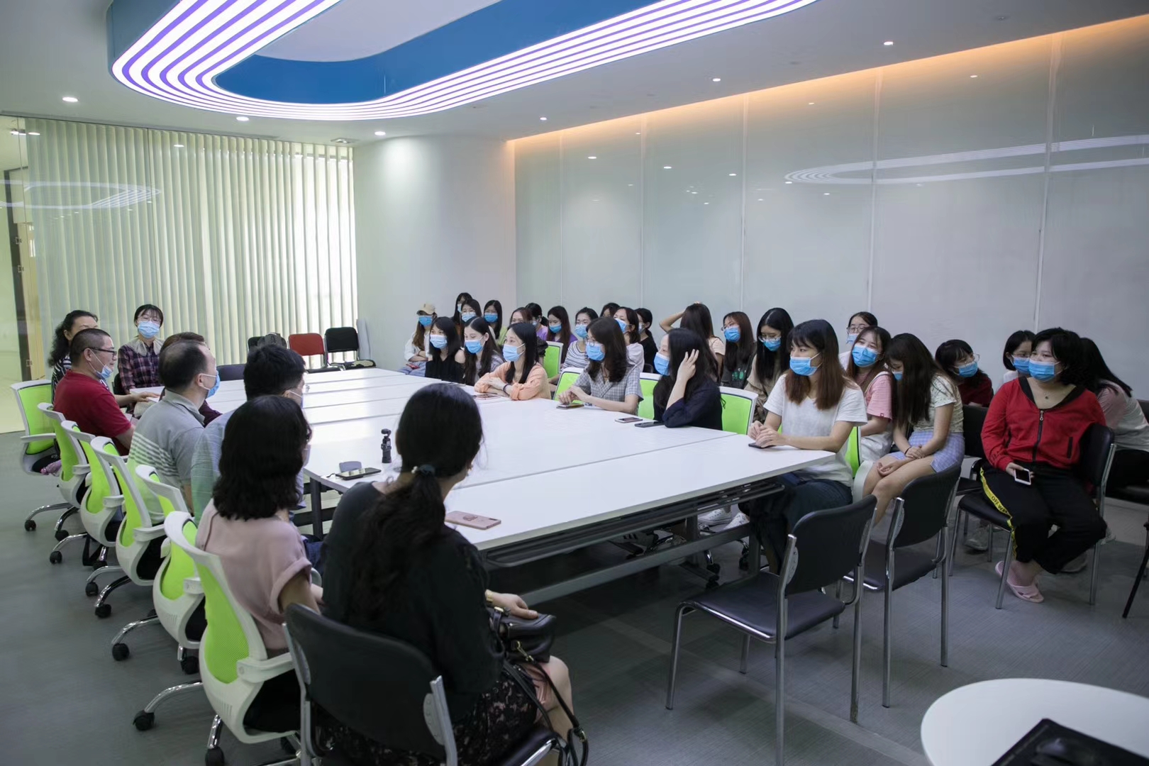 景海明一行参观了公司的工作环境,询问了疫情防控情况,了解了同学们的工作、生活情况,并向公司为同学们提供的贴心、舒适、安全的生活、工作环境表示衷心地感谢。