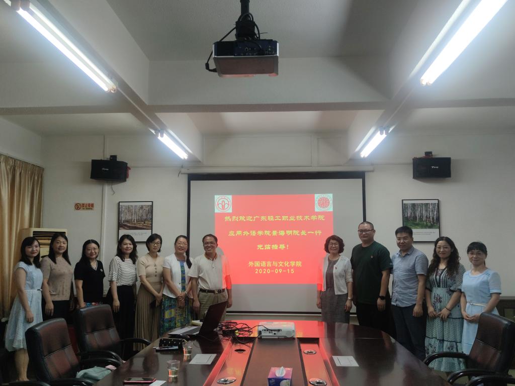 9月15日,应用外语学院党总支书记景海明一行赴广东金融学院外国语言与文化学院交流。广东金融学院外国语言与文化学院党总支书记黄晓莉、院长黄中习热情地接待了景海明一行。
