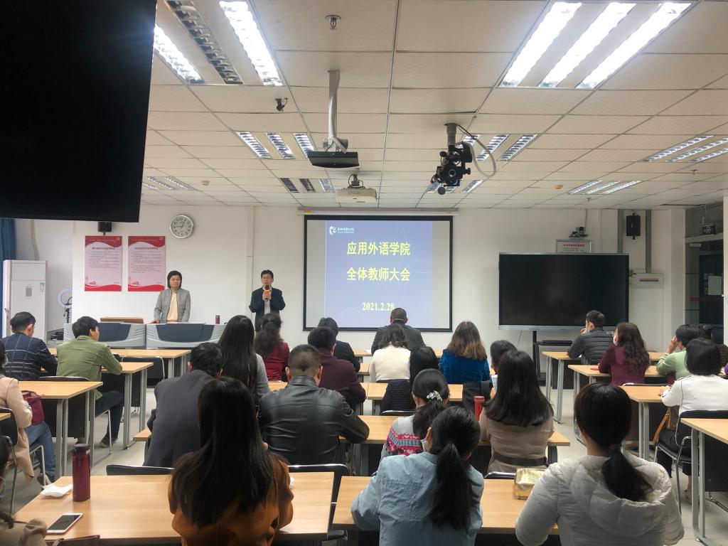 应用外语学院全体领导、行政人员、老师们参与本次会议。(应用外语学院/程雅婧 )All the leaders, administrators and teachers of School of Applied Foreign Languages attended the meeting. (School of Applied Foreign Languages/Cheng Yajing )