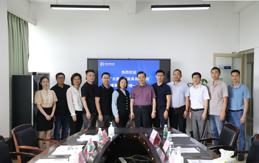 5月24日,广东爱米高家具有限公司总经理谭素珍一行来学校走访交流。校长卢坤建在办公楼三楼会议室热情接待了企业来访人员。