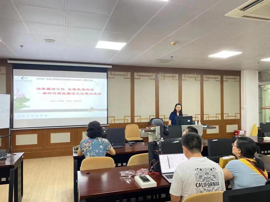 为进一步增强学院党员教师廉洁自律意识,加强师德师风建设,2022年9月20日,应用外语学院邀请学校马克思主义学院副教授叶彦岑为学院党总支的全体党员教师开展以“涵养廉洁文化、永葆先进纯洁”为主题的新时代高效廉洁文化建设宣讲会。