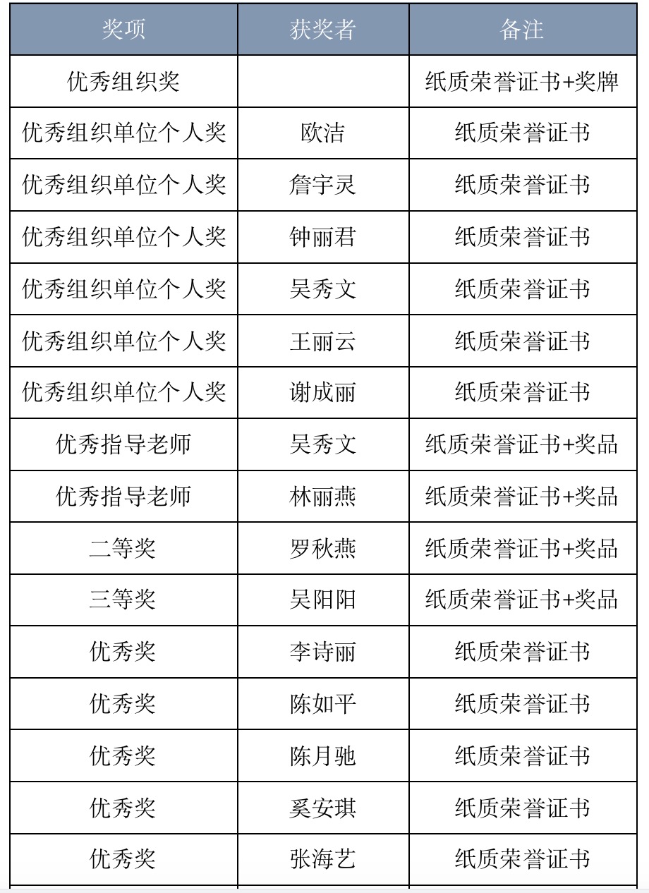 我校荣获大赛多个奖项,热烈祝贺以下获奖人员: