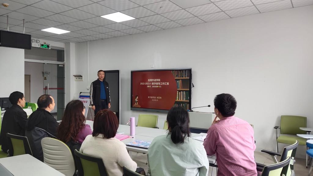 2023年2月28日下午2:30,应用外语学院在广州新港校区第二工业实训楼B802-1召开新学期教学督导工作汇报会。应用外语学院院长章国军、校督导室徐国良督导以及应用外语学院全体二级督导参加会议。