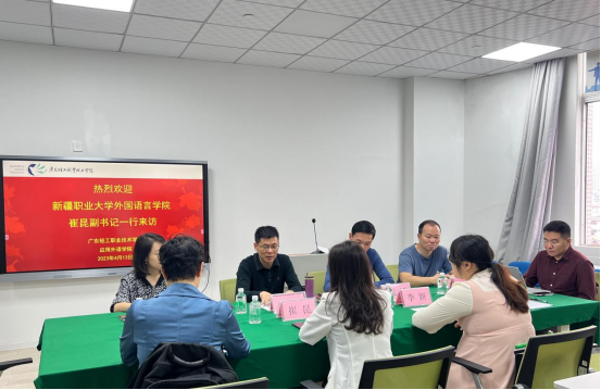 2023年4月13日上午,新疆职业大学外国语言学院副书记崔昆、小学英语教育专业教研室副主任李妍一行2人来访我院,参加高质量外语教育教学方面的经验交流会。我院院长章国军、教学副院长张韬等人热情接待了来访人员。会议在第二实训楼802-1举行,由章国军主持。