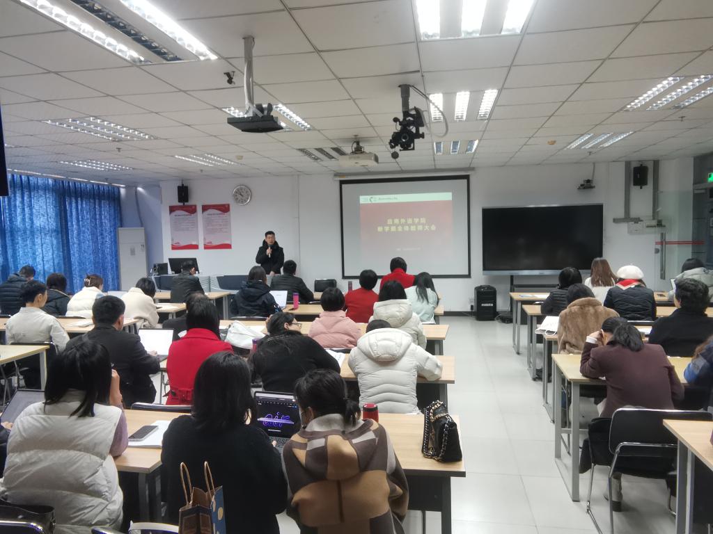 2024年2月27日上午九点半,应用外语学院在第二工业实训楼B803召开了新学期全体教师大会,会议由章国军主持。