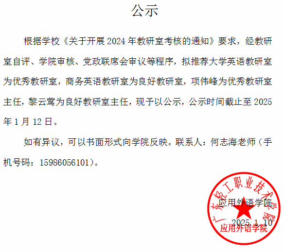 2024年教研室考核结果公示