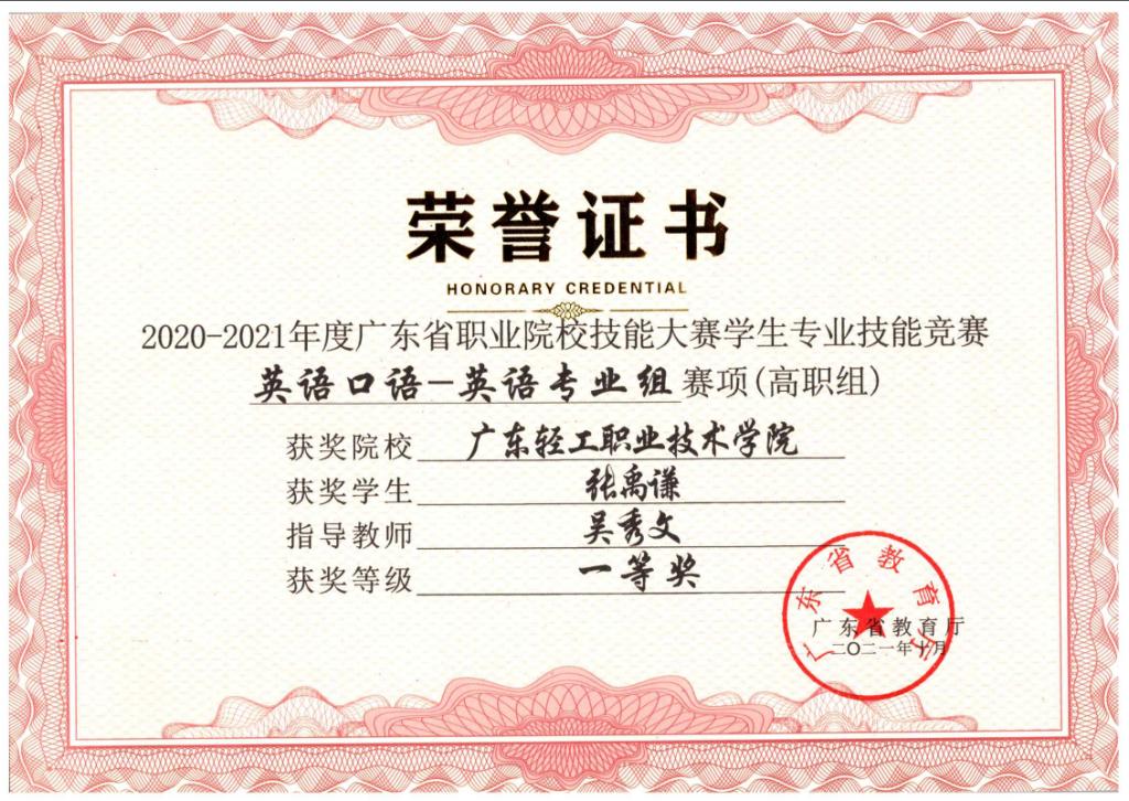 2020-2021广东英语口语大赛(高职组)一等奖