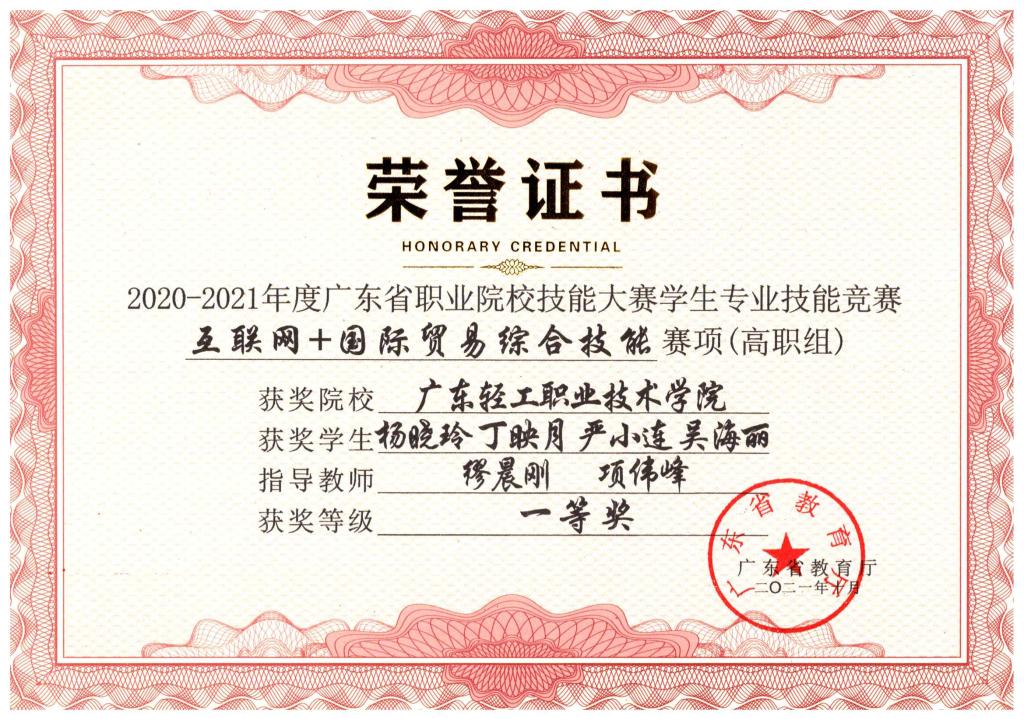 2020-2021广东省互联网国贸技能大赛(高职组)一等奖